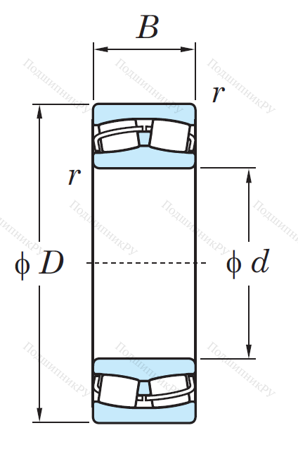 Сферический роликовый подшипник 22208 RZW33 C3, представляет разновидность сферических роликоподшипников. В зависимости от типа может иметь один или два ряда тел качения в форме бочкообразных роликов. Однорядный имеет следующее конструктивное исполнение: массивная внешняя обойма, внутреннее кольцо, сепаратор, ролики. В зависимости от типа может иметь обоймы без бортов или с бортами. Является неразъёмным.
