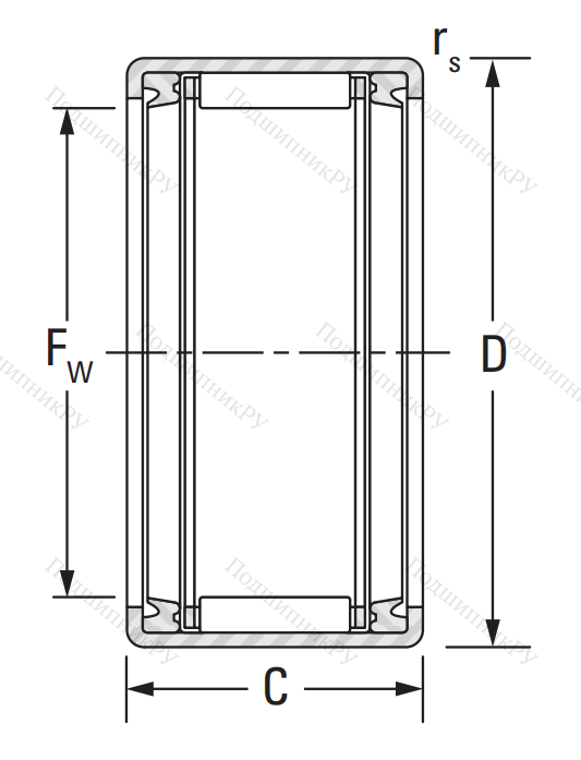 Игольчатый подшипник HK 3520 2RS имеет неразъемную конструкцию, в которую входят игольчатого вида тела качения и наружная штампованная шина. Как правило, является однорядным, без каналов для подачи смазочного материала.