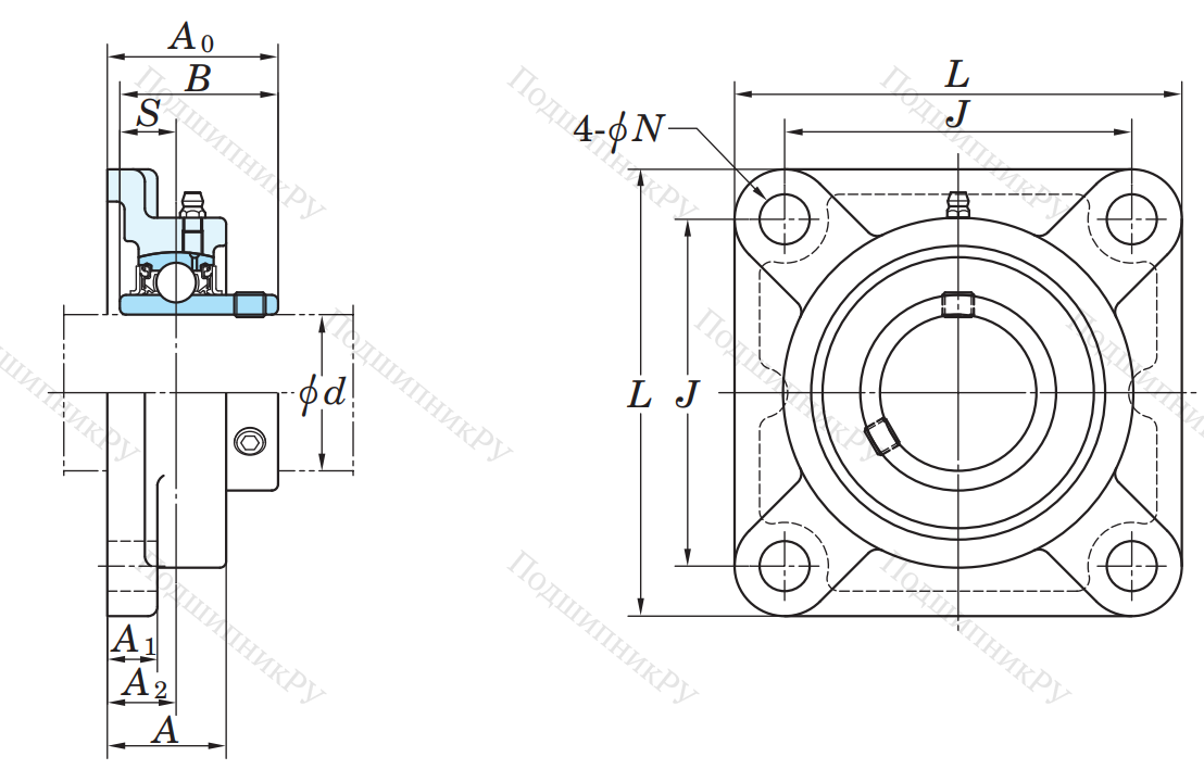 Внешнее кольцо имеет сферическую форму, поэтому установка изделия происходить при помощи специальных посадочных элементов. Таким образом, деталь может менять свое положение в пространстве относительно стального или чугунного корпуса, что дает возможность компенсировать несоосность.