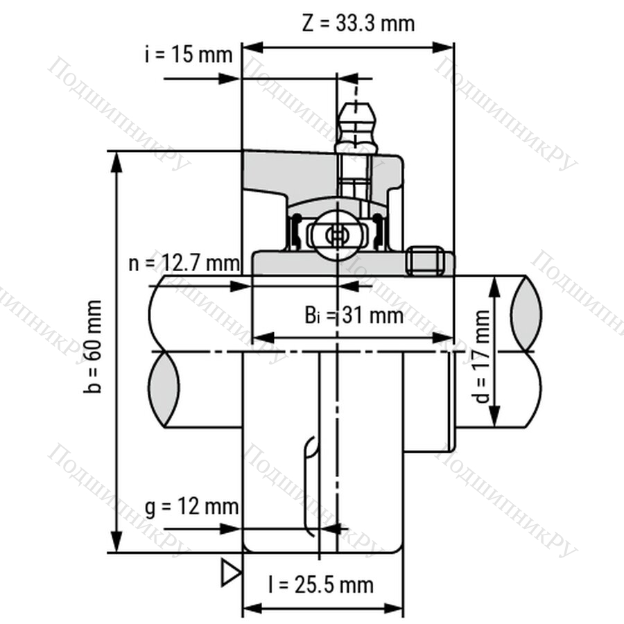 - состоит из вкладыша шарикоподшипника UC 203 и чугунного корпуса FL 204
